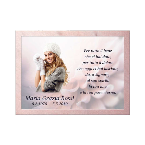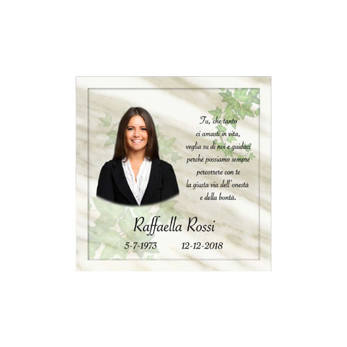 Fotolapidi in ceramica o materiali resistenti, personalizzabili con immagini e testi. Offrono un ricordo duraturo grazie alla qualità di stampa e alla resistenza agli agenti esterni.