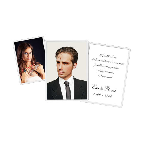 Piccoli oggetti commemorativi personalizzabili, ideali come ricordo simbolico. Disponibili in vari formati, anche economici, con stampa fotografica o solo testo.